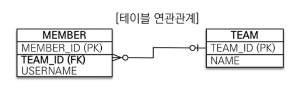Member의 TEAM_ID(FK)를 통해 TEAM을 알 수 있고, TEAM의 TEAM_ID(PK)를 통해 MEMBER를 알 수 있다.
