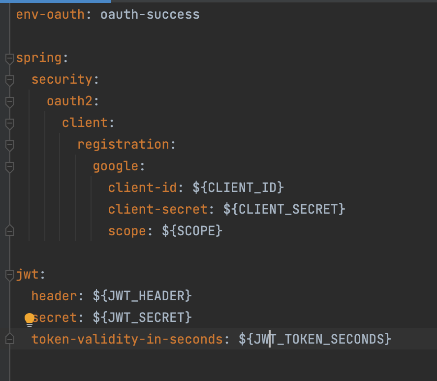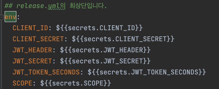 - release.yml에서 주입된 값을 application-oauth.yml의 ${release.yml 상수값}으로 전달받는다.