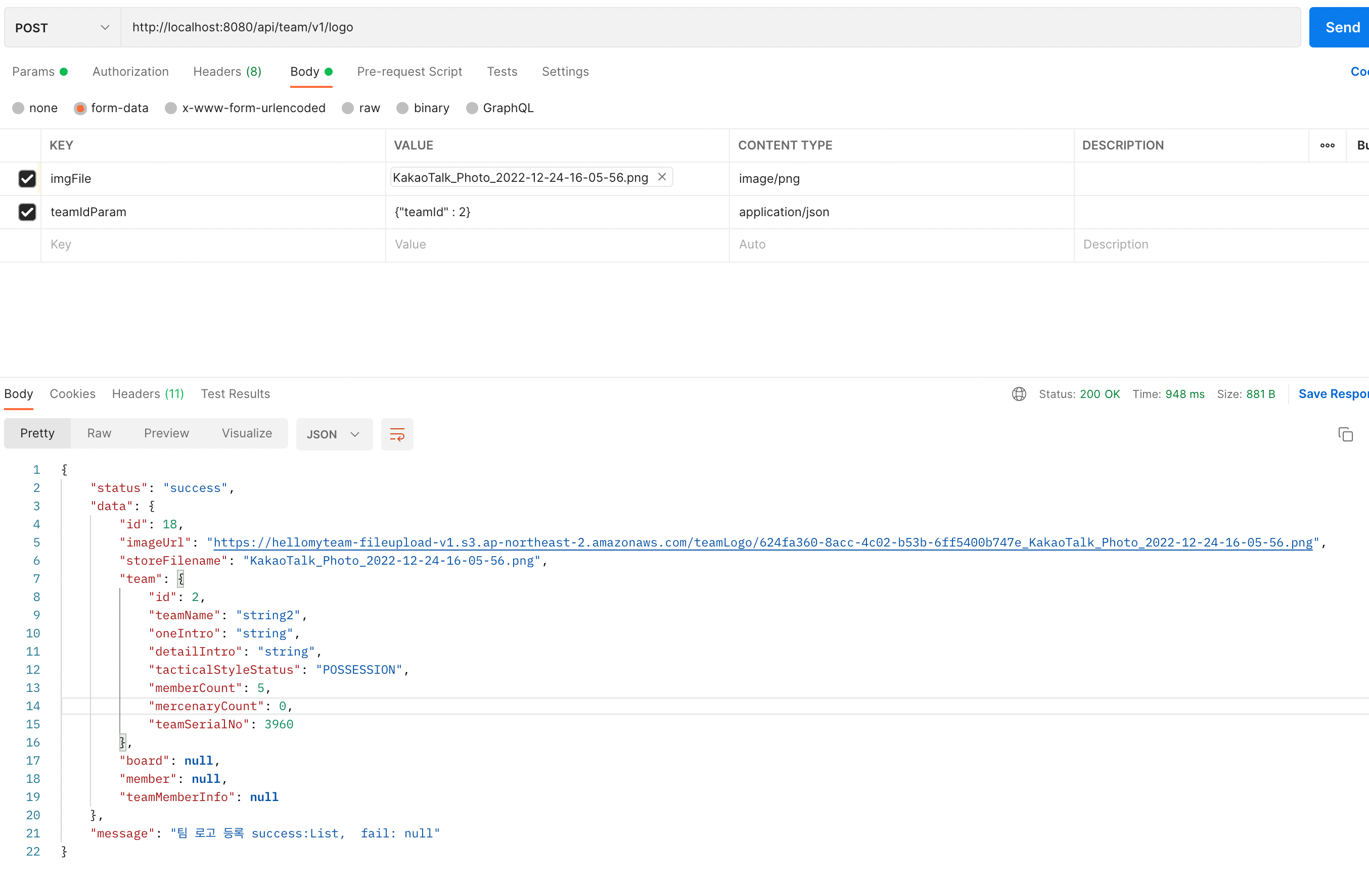 나의 경우는 팀 프로필 변경 건에 대한 API를 만들어보았다.