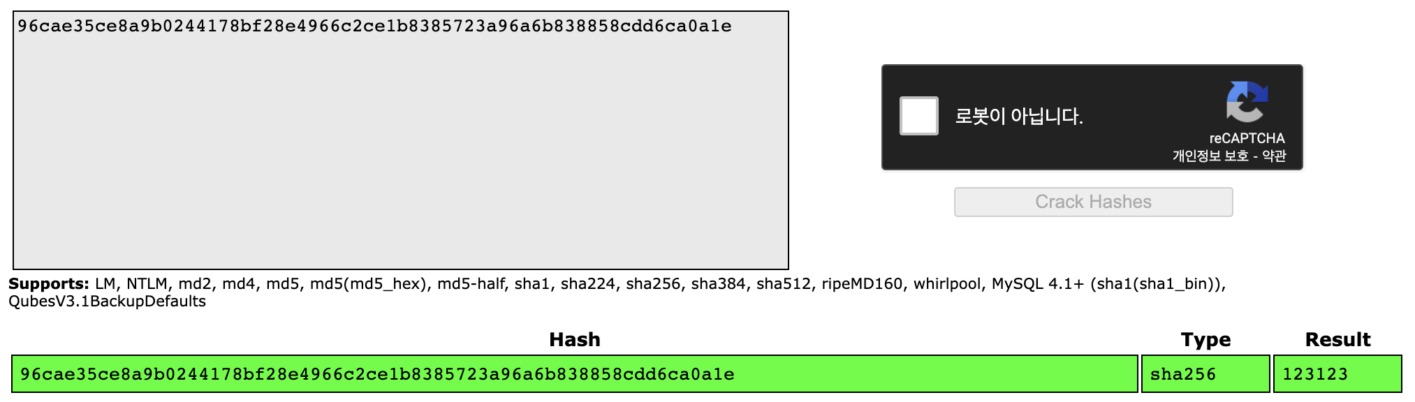 96cae35ce8a9b0244178bf28e4966c2ce1b8385723a96a6b838858cdd6ca0a1e 를 넣으면