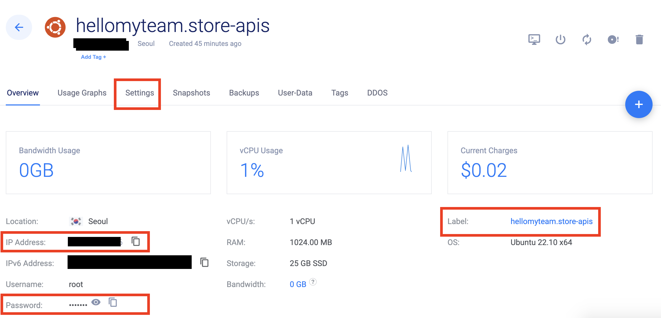 Settings 보면 Reverse DNS가 있는데 이 도메인이 Vultr에서 제공해 주는 무료 도메인인 줄 알고