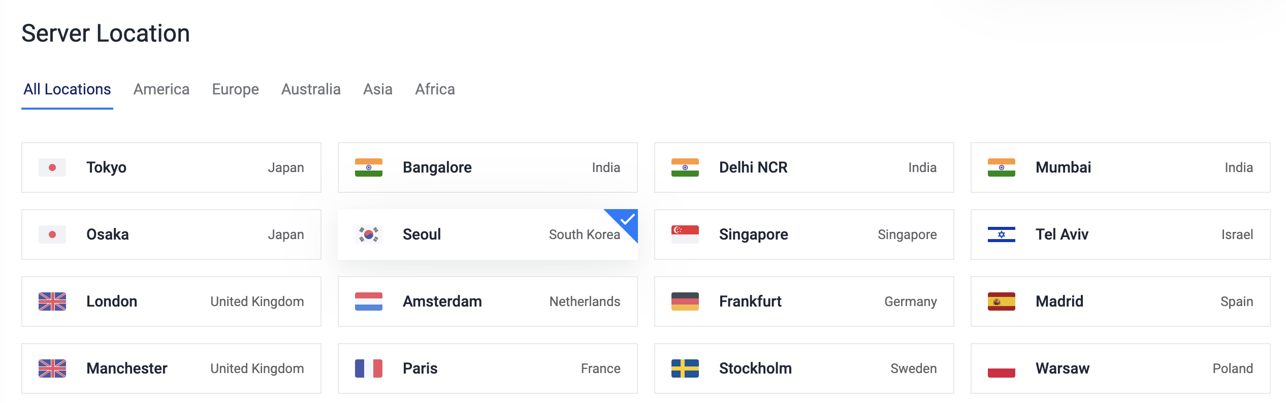 다양한 서버 Location이 있지만 한국으로 선택하자