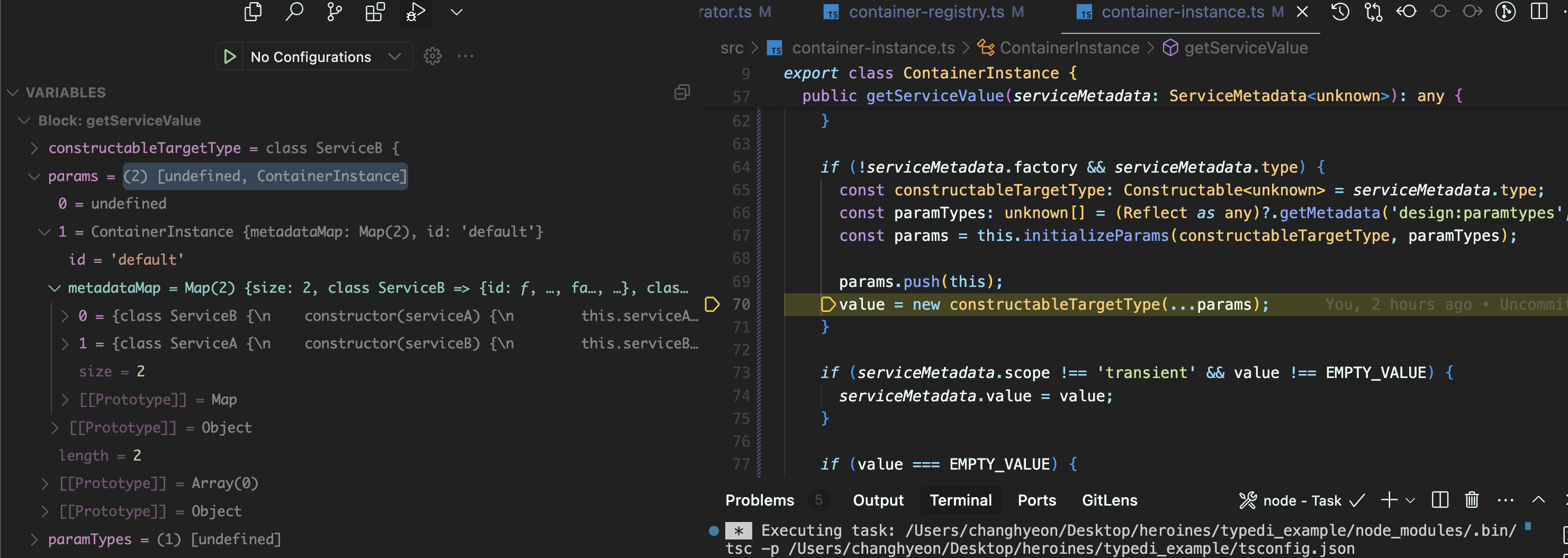 - public static readonly defaultContainer: ContainerInstance = new ContainerInstance('default'); 실행