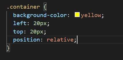 position: relative -> container에 포함된 박스 기준으로 20px, 20px이 적용