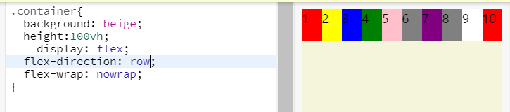 1. flex-wrap: nowrap ▶ 기본값 nowrap, 사이즈를 줄일 경우 사이즈가 줄어든다(찌부된다고 이해하면 쉬움)