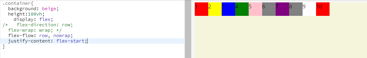 1. justify-content: flex-start: 왼쪽을 기준으로 배치