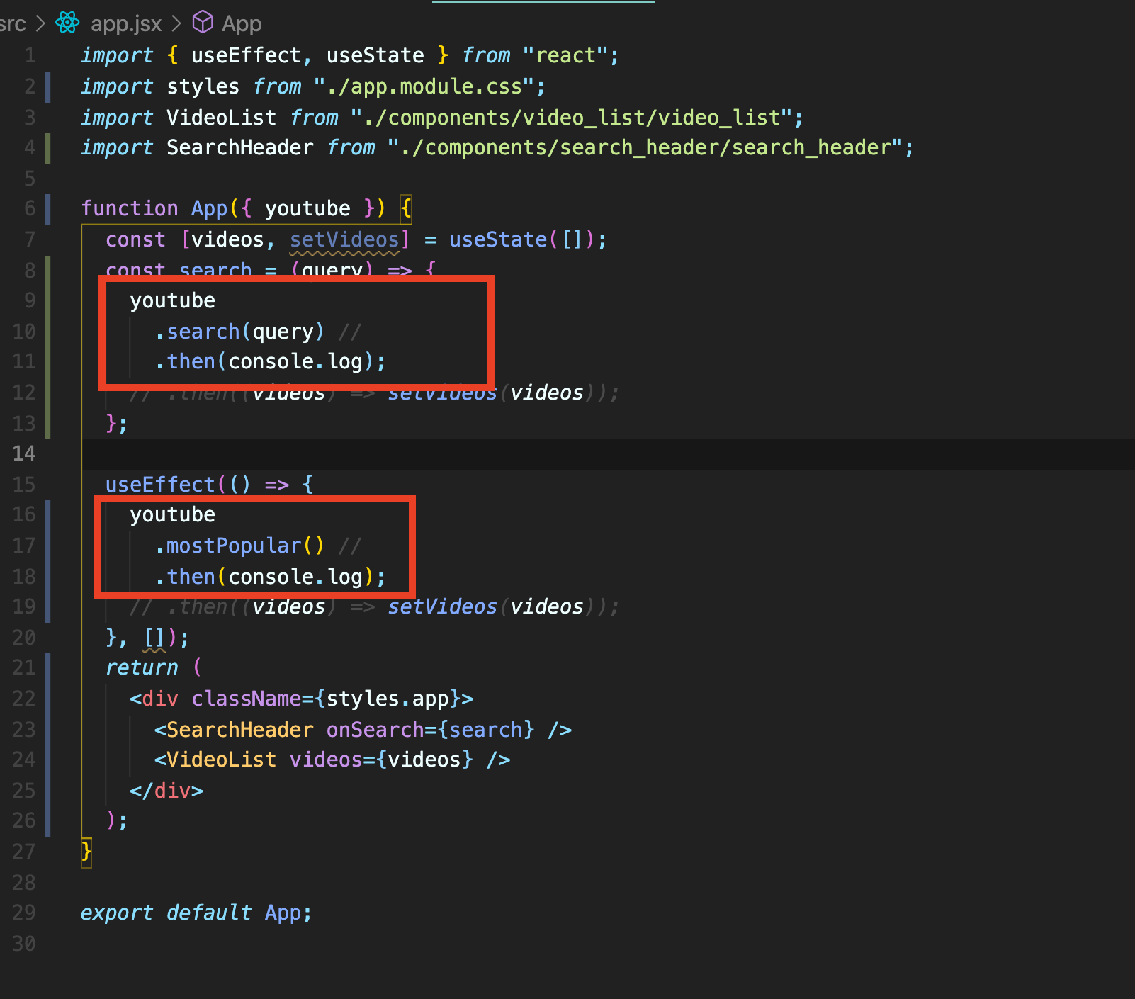 현재 만들고 있는 유튜브 로직에서 .then부분에 대한 console.log하여 불러온 데이터값