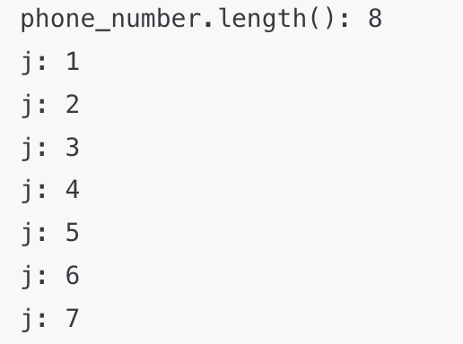 그래서 Integer j = phone_number.length();로 선언했고, 최대한 for문을 안돌게 수정했다.