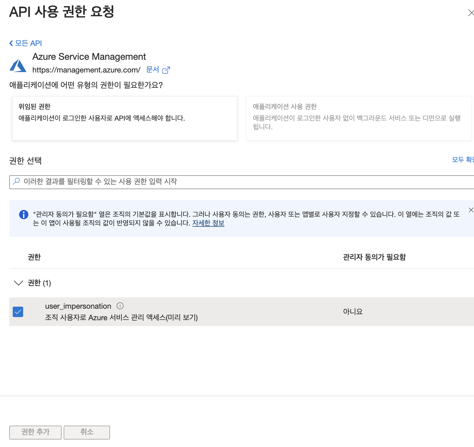 - "모든 애플리케이션(All applications)" 목록에서 해당 서비스 프린시플을 찾기
